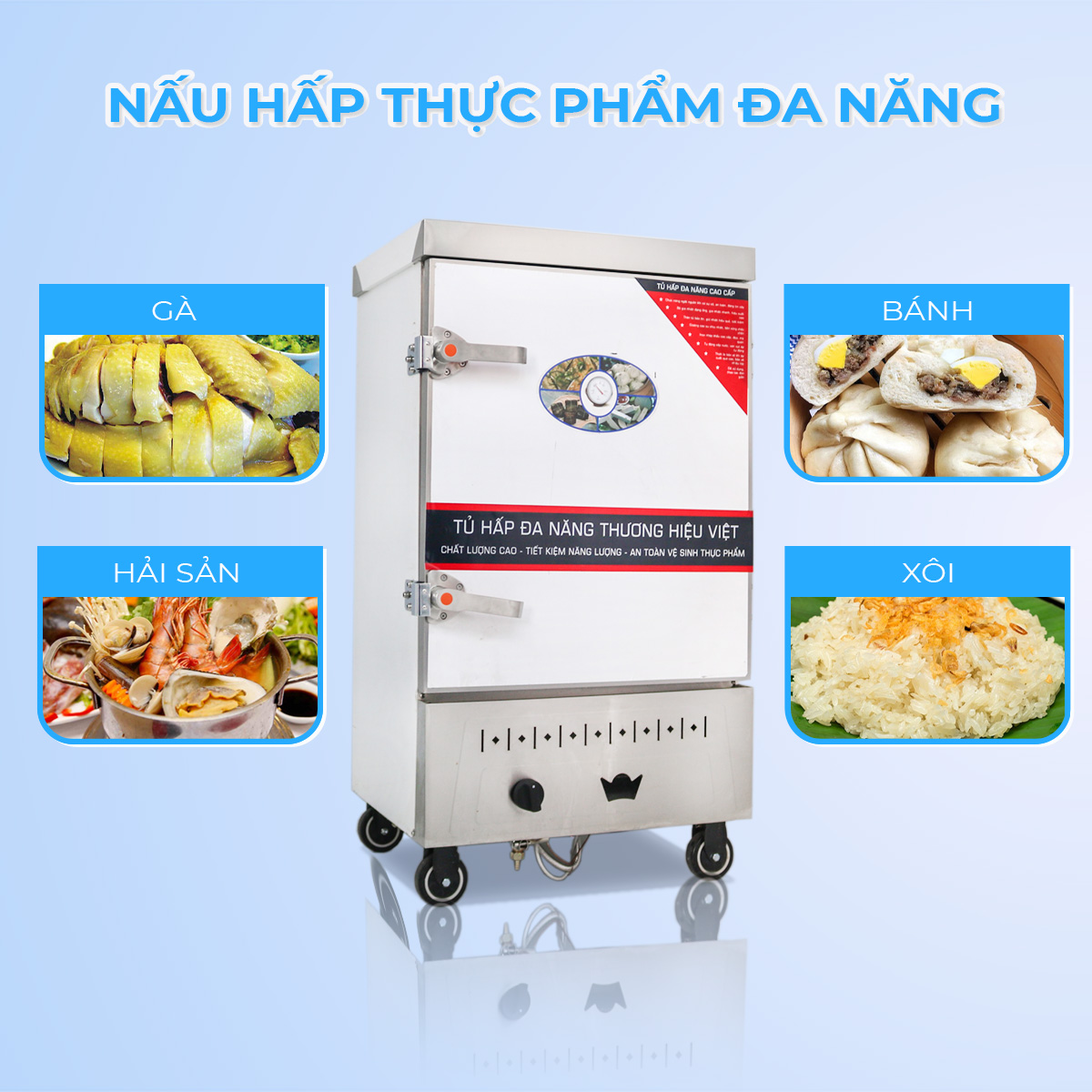 Tủ hấp công nghiệp đa năng dùng điện gas