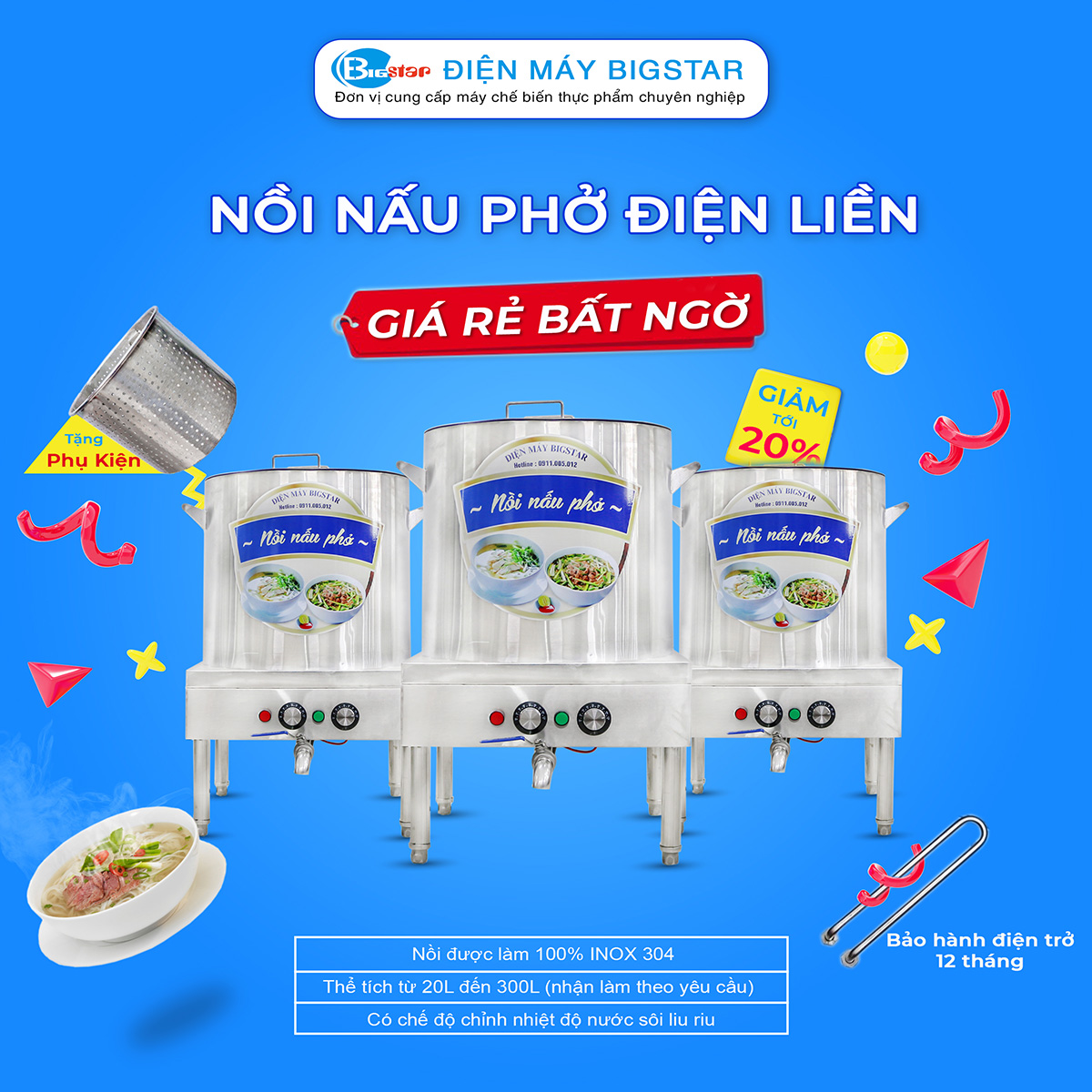 | 1 | Nồi nấu phở Việt Nam bằng điện 20L | 2.900.000 |