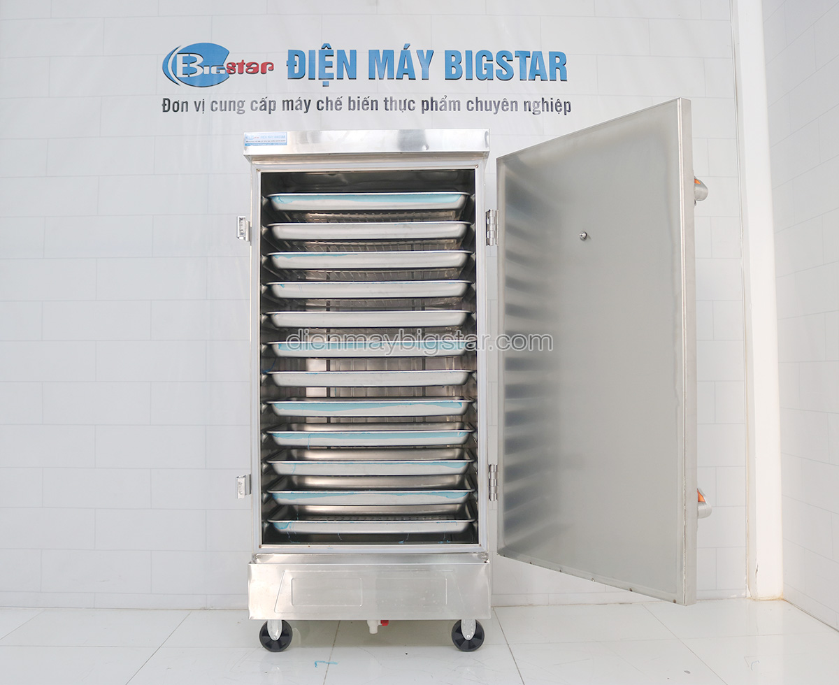 Tủ đi kèm 12 khay nấu hoặc hấp. Khay cũng được làm bằng inox nên rất an toàn vệ sinh. Năng suất mỗi khay đựng được tối đa 3kg gạo.